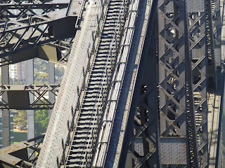 After a trip to the past, I kept on an began my journey across the bridge. It was beautiful to see the city from so high up and I even climbed one of the turrets. I haven't decided yet to climb the entire thing, I fear that my fear of falling off might keep me from doing so. I hear it is wonderful though! It was so windy on the top of the turret but the view was amazing. You could see everything! In the turret was the story of how the bridge was built. It was crazy to hear how men climbed such great heights without safety equipment. I could really see the sense of pride that Sydney and all of Australia had and has for the Bridge.